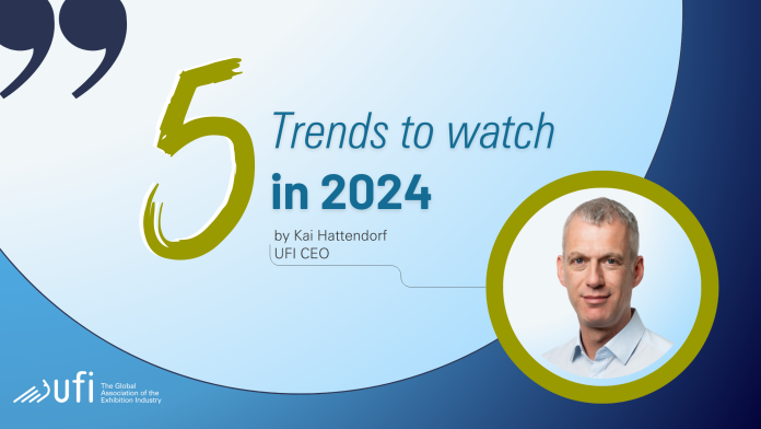 So – are we all good to go for 2024? As every year, the UFI team has been listening to and talking with our members and industry leaders from all around the world to get their views on what lies ahead next year. In his annual column about the upcoming top 5 trends in the industry, Kai Hattendorf, CEO UFI, shares his view on what will shape the next 12 to 18 months.